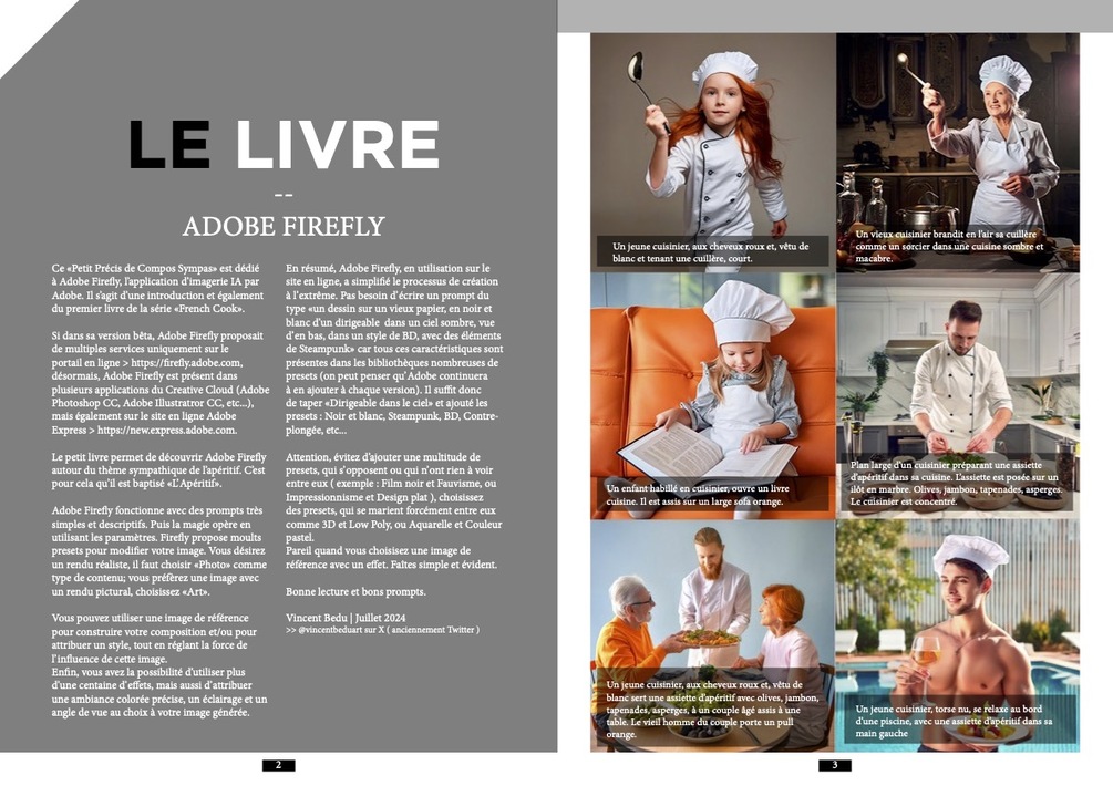 Ce «Petit Précis de Compos Sympas» est un livre spécial dédié à tous les utilisateurs d'Adobe Firefly, de tous niveaux, l’application d’imagerie IA par Adobe. Il s’agit d’une introduction et également du premier livre de la série «French Cook».
